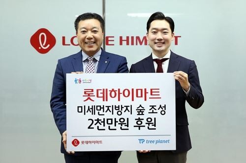 [토요경제=이선주 기자] 롯데하이마트는 17일 숲 조성 전문 벤처기업인 '트리플래닛'에 후원금 2000만 원을 전달했다.