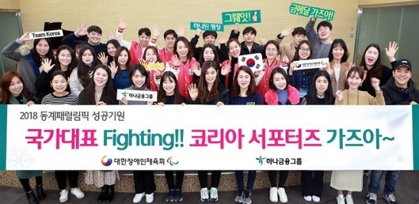 [토요경제=유승열 기자] 하나금융지주는 7일 대한장애인체육회와 함께 '코리아 서포터즈' 586명을 구성해 평창 동계 패럴림픽 기간 동안 응원전뿐 아니라 문화 공연도 함께 하기로 했다.