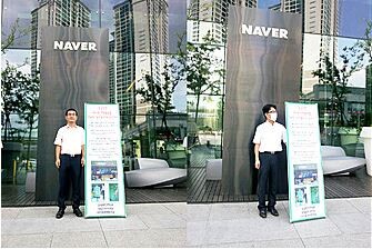 소상공인연합회창립준비위원회 네이버대책위원회는 26일 낮 12시부터 1시간 동안 권순종 대책위 위원장, 김대준 대책위원, 전희복 대책위원 등 3명이 경기도 성남 판교 네이버 본사 앞에서 1인 시위를 진행했다고 밝혔다.