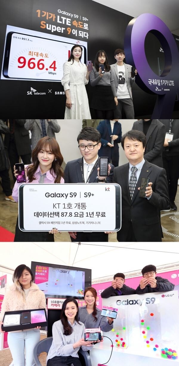 [토요경제=여용준 기자] 이동통신 3사가 9일 삼성전자 갤럭시S9와 S9플러스의 개통 기념행사를 열고 판매에 돌입했다.