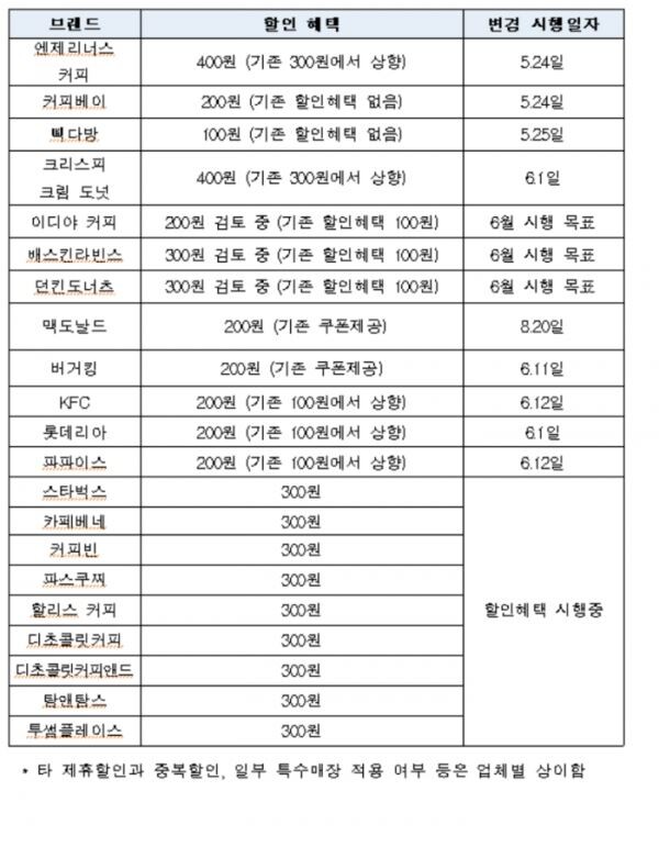 텀블러 사용 고객에게 가격할인, 쿠폰제공 등 제각각이던 혜택을 가격할인로 통일, 음료 판매액의 10% 수준(100~400원)의 가격할인 혜택을 주도록 했다.