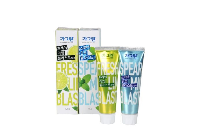 이번에 출시한 가그린 블라스트 치약은 ‘후레시 라임 블라스트’와 ‘스피아 민트 블라스트’ 총 2종이다. 치태 제거 효과가 있는 이산화규소, 충치예방 효과가 있는 플루오르화나트륨(불소) 등이 함유됐다.