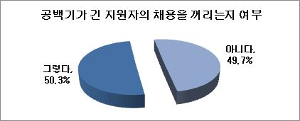 [토요경제신문=여용준 기자] 기업 절반은 공백기가 긴 지원자의 채용을 주저하는 것으로 나타났다.
