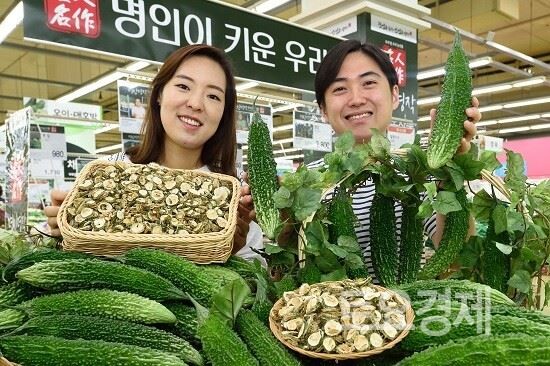 29일 서울 서초구 농협하나로마트 양재점에서 모델들이 올해 첫 출하된 생여주를 선보이고 있다. 여주는 식물인슐린인 펩티드P를 함유하고 있어 당뇨에 효능이 있는 것으로 알려졌다. 하나로마트 양재점 등에서는 생여주(2입/팩) 2,380원, 건여주(100g) 8,000원에 판매한다. <사진=농협유통>