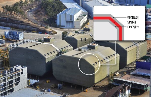 현대중공업은 지난 3월 단열재 전문회사와 공동 개발한 고난연성 단열재를 8만4000㎥급 초대형 LPG운반선의 화물탱크에 처음 시공했다고 4일 밝혔다.
