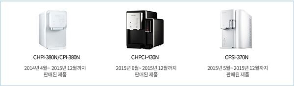 사용하는 정수기가 해당 정수기인지 확인하고자 하는 소비자는 코웨이 홈페이지(www.coway.co.kr) 제품확인 시스템과 고객센터 핫라인(02-781-7119)을 통해 확인하면 된다.