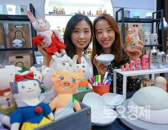6일 서울 현대백화점 미아점 문화홀에서 열린 홈 인테리어 용품전 '나를 채우는 삶의 공간'에서 행사 도우미들이 소품 제작 체험강좌를 통해 제작한 제품들을 선보이고 있다. 현대백화점은 오는 10일까지 미아점에서 '홈 인테리어 용품전'을 열고 200여 개의 다양한 가전용품을 선보인다. <사진=현대백화점>