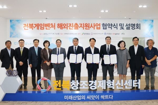 효성은 7일 오후 전북창조경제혁신센터에서 전라북도, HN게임즈 등 4개 기관과 ‘전북게임벤처 해외진출 지원 사업에 대한 업무협약’을 체결했다.