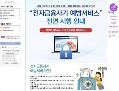 ‘전자금융사기 예방서비스’는 보이스피싱이나 파밍으로인한 금융피해를 막기 위해 개인고객이 공인인증서를 발급받거나 인터넷뱅킹으로 하루에 300만원이상 이체할 경우 미리 지정된 단말기(PC, 스마트폰 등)를 이용하거나 추가본인확인(SMS인증, 전화확인 등)을 거치도록 하는 제도다.