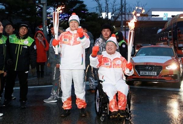 김 회장과 전 부장은 강릉시청 일대를 함께 달리며 동계패럴림픽대회가 국민 관심과 성원 속에서 성공적으로 개최되기를 기원했다.