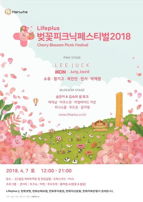 [토요경제=정종진 기자] 한화그룹 5개 금융계열회사는 14일부터 오는 4월 2일까지 봄 맞이 '라이프 플러스 벚꽃피크닉페스티벌 2018' 프로모션을 진행한다. 올해 페스티벌은 다음달 7일 개최된다.