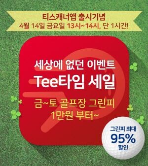 [토요경제=여용준 기자] 골프존카운티가 모바일 골프 부킹앱인 ‘티스캐너’ 오픈을 기념해 ‘단 하루, 단 한 시간 그린피 95% 할인 이벤트’를 진행한다고 11일 밝혔다.