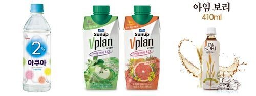 ▲ 왼쪽부터 롯데칠섬음료의 2% 아쿠아와 매일유업의 썬업 브이플랜, 일화의 아임보리. <사진=각사>