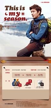 참여를 원하는 이들은 아이더 페이스북에 방문해 ‘좋아요’를 누르고 2013 FW 이민호 화보와 아이더 로고를 선택한 후 광고 카피를 입력하면 된다. 광고 이미지를 완성한 후 ‘스크랩 이벤트’에 참여해 이벤트 페이지를 자신의 담벼락에 올리면 이벤트 응모가 완료된다. 이벤트는 PC와 모바일에서 모두 가능하다. 이벤트 페이지 공유와 좋아요, 댓글, 친구 태깅 시 당첨 확률은 더욱 높아진다.