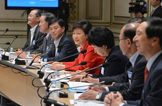 박 대통령은 규제 완화에 대해서도 “지난달 말 기업간담회에서 대한상공회의소 회장께서 ‘기업들이 투자의지는 있지만 투자처가 보이지 않는다. 돈은 있는데 기회를 기다리는 경영자가 많다’고 말씀하셨다”며 “투자를 넓히는 가장 좋은 방법은 결국 규제 완화와 정책에 관한 신뢰”라고 말했다.