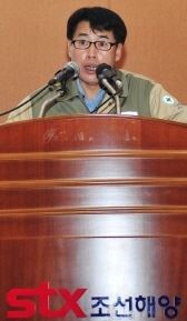 [토요경제=홍성민기자] 유정형 STX조선해양 신임 대표이사가 2일 STX조선해양 진해조선소에서 열린 취임식에서 회사의 조속한 경영정상화를 통한 자율협약 조기졸업과 이후 독자생존에 대한 강력한 의지를 피력했다.