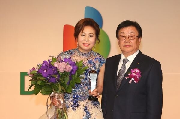 ▲ 21일 고양시 KINTEX 제2전시장에서 열린 '2017 DB손해보험 연도상 시상식'에서 김정남 사장(오른쪽)과 판매왕을 차지한 장순기 PA가 기념촬영을 하고 있다.<사진=DB손해보험>