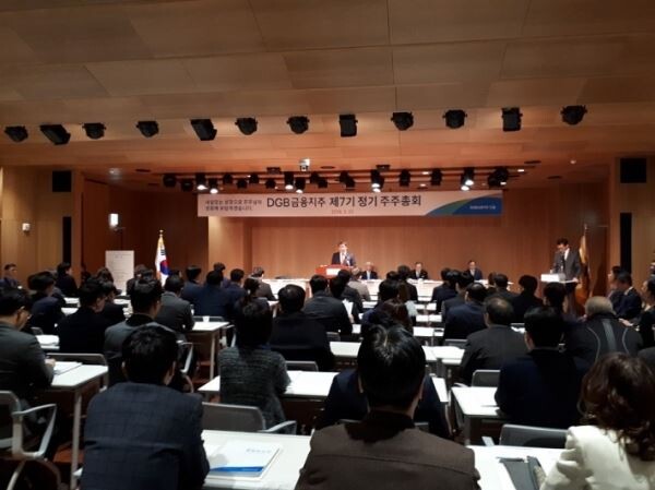 이날 대구은행 제2 본점에서 열린 DGB금융지주 정기 주주총회에서 박 회장은 이같이 밝히고 "지주 회장직은 상반기 중 거취를 표명하겠다"고 말했다.