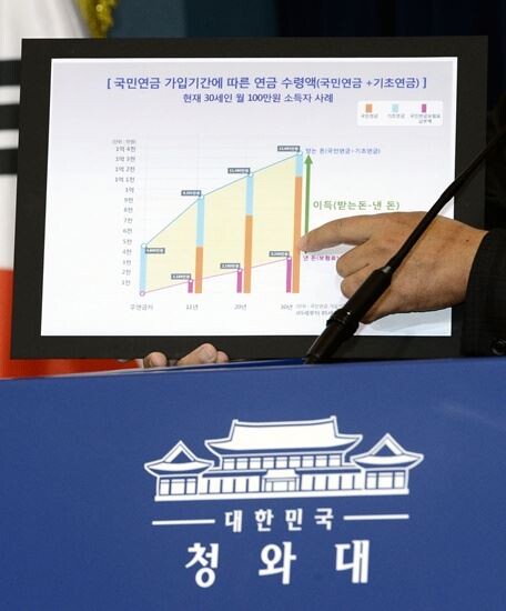그러나 기초연금만 별도로 놓고 볼 경우 국민연금 가입기간이 길수록 받게 되는 기초연금액은 줄어들기에 오히려 손해라는 분석이다. 정부안은 기초연금 수령액을 국민연금 가입기간과 연계, 가입기간이 11년 이하인 사람은 월 20만원씩 기초연금을 받고, 20년이 넘으면 10만원, 그 사이 기간은 10~20만원을 받는다.