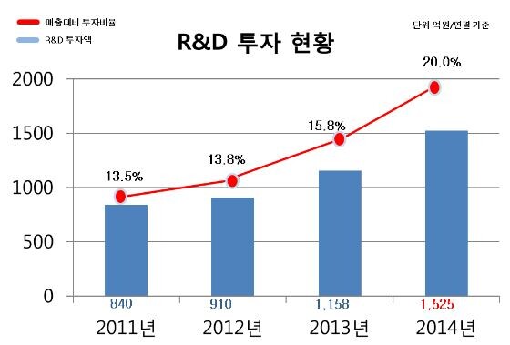 한미약품은 지난 2013년 R&D 투자액이 7301억원을 기록하며, 국내 제약업계에서 최고의 투자를 기록했으며, 지난해에는 이보다 400억원을 추가 투자한 7612억원을 투자했다. 이로써 전체 영업이익이 감소하게 됐다. 하지만 한미약품은 완제의약품 중심의 해외수출 확대로 이익률은 점차 개선되는 추세라고 밝혔다.