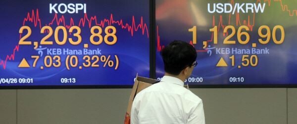 코스피 지수도 상승세를 이어가고 있다. 전날 6년만에 2190선을 탈환하며 장을 마감한 코스피 지수는 26일 오후 2시17분 현재 2208.48을 넘어서며 2200선 이상을 유지하고 있다.