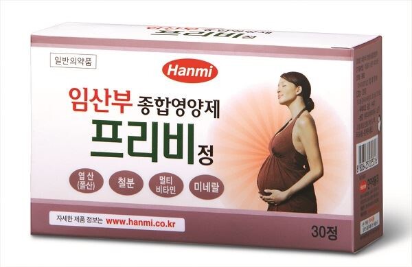 28일 한미약품에 따르면 프리비정은 태아·임산부 건강을 위한 영양학적 요구량을 충족시킨 제품이기 때문에 엽산제·철분제 등의 단일 영양제를 별도 복용할 필요가 없다. 특히 과다 복용할 경우 인체에 축적되는 지용성(물에 녹지 않는) 비타민인 A·D가 들어있지 않아 이에 따른 부작용을 걱정하지 않아도 된다. 프리비는 또 2가철(Fe2+)에 비해 위장장애, 변비 등 부작용이 적은 3가철(Fe3+)을 사용했기 때문에 음식물 섭취에 민감한 임산부들도 부담없이 복용할 수 있다.