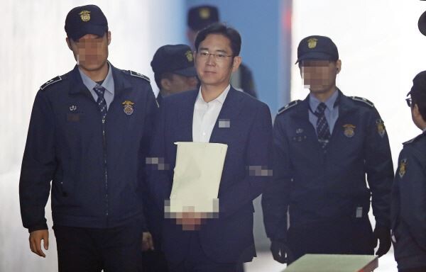 ▲ 지난달 28일 오전 삼성전자 이재용 부회장이 서울 서초구 서울중앙지방법원에서 열린 9회 공판에 출석하기 위해 호송차에서 내려 법정으로 향하고 있다. <사진=연합>