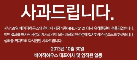 베이직하우스, 청바지 발암물질 검출 '인정'…"전량폐기·환불…" 사과
