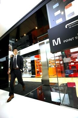 M포인트몰에서는 현찰은 절대 받지 않고 오로지 적립 포인트 한도 내에서 물건을 살 수 있도록 돼있다. 또 인터넷 사용과 커피를 무료로 제공하고 뉴욕현대미술관(MoMA)의 혁신적인 디자인 상품을 감상할 수 있는 공간으로 설계됐다.
