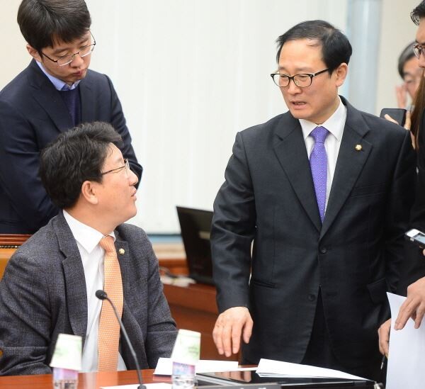 ▲ 자원외교 국정조사 특위 전체회의가 열린 6일 국회에서 권성동 새누리당(왼쪽)·홍영표 새정치민주연합 간사가 향후 국정조사 일정 등을 논의하고 있다.