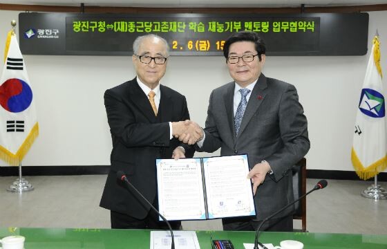 [토요경제=김형규 기자] 종근당고촌재단(이사장 김두현)은 지난 6일 서울 광진구청 본관에서 광진구와 ‘저소득 가정 멘토링 사업’ 공동 협약식을 가졌다.