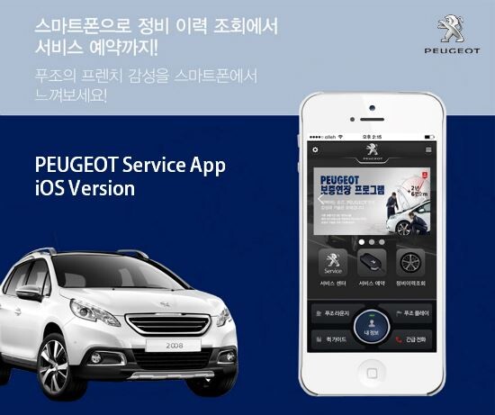 한불모터스㈜는 지난해 7월 출시한 안드로이드용 애플리케이션에 이어 아이폰용 애플리케이션을 추가 출시하며, 더 많은 고객과 커뮤니케이션을 강화할 예정이다. 이번 출시로 인해 안드로이드폰과 아이폰을 사용하는 모든 푸조 고객들이 보다 편하게 차량을 관리하며 서비스를 받을 수 있게 됐다. 고객들은 GPS를 이용해 가장 가까운 푸조 서비스센터 찾기와 정비 이력 조회가 가능하고, 실시간으로 서비스 예약을 할 수 있다(※정비이력조회는 실제 차량 소유주 일치 여부 확인을 위해 서비스 센터 방문 후 인증이 필요하며, 정비 예약은 서비스 센터 상황에 따라 변경될 수 있다).