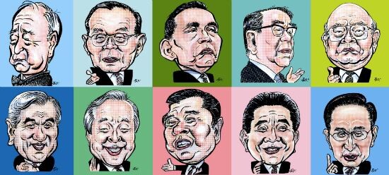 왼쪽 위부터 시계방향 이승만 전 대통령, 윤보선 전 대통령, 박정희 전 대통령, 최규하 전 대통령, 전두환 전 대통령, 노태우 전 대통령, 김영삼 전 대통령, 김대중 전 대통령, 노무현 전 대통령, 이명박 대통령 (사진=한국만화영상진흥원 제공)