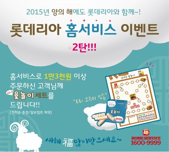 롯데리아 관계자는 “이번 홈서비스 이벤트는 민족 대 명절 설 연휴에 앞서 온 가족들이 함꼐 모여 즐길 수 있고, 전통의 의미를 되새기고자 ‘윷놀이’로 구성하게 됐다”며 “온 가족들이 함께 모여 롯데리아 홈서비스를 통해 기분 좋은 경험과 행복한 설 명절을 보내기를 바란다”고 전했다.