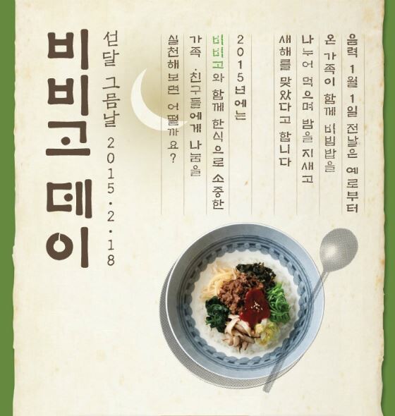 ‘비비고 데이’는 설날 전날인 섣달 그믐, 여러 가지 반찬으로 비빔밥을 만들고 가족과 친지, 이웃들과 나눠 먹으며 새해를 맞이하던 풍습을 기념하기 위해 2012년부터 시작했다.
