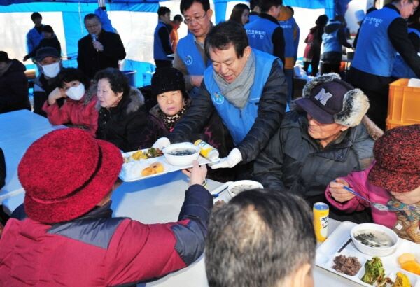 인천지역 독거노인 등 300여명에 떡국 대접·선물 꾸러미 전달