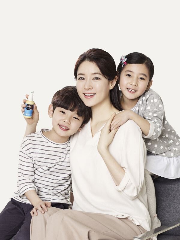 ▲ 한국먼디파마 '베타딘 인후 스프레이' 광고모델 이영애와 어린이 모델.