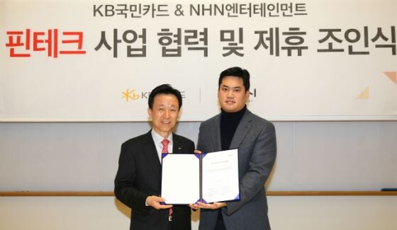 지난 2월 11일 KB국민카드는 강력한 고객 기반을 보유한 NHN엔터테인먼트와 핀테크 사업 협력을 위한 업무 제휴 협약을 체결했다. 양사는 각자가 보유한 노하우를 공유, 핀테크 환경에 최적화 된 다양한 융합 서비스를 선보일 계획이다.