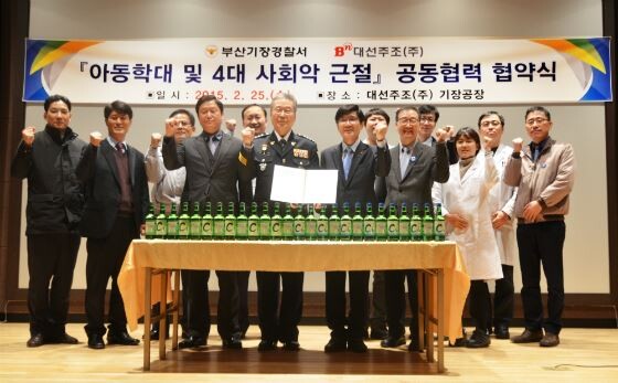 25일 대선주조와 부산기장경찰서는 기장에 위치한 대선주조 생산공장에서 ‘아동학대 및 4대 사회악(성폭력, 학교폭력, 가정폭력, 불량식품) 근절을 위한 공동협력 협약식’을 가졌다.