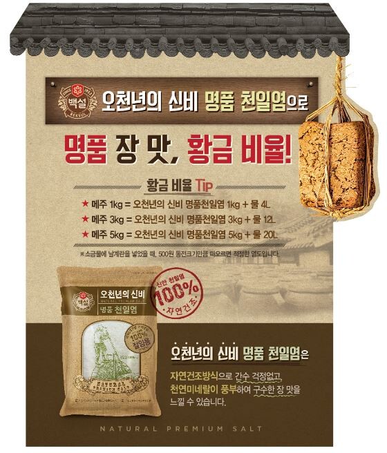지난 2011년 닐슨 조사 자료에 따르면, 시판 된장을 구입해 먹지 않고 집에서 직접 만든 집된장을 소비하는 가정은 46.7%에 달하며, 장 담글 때 사용되는 소금량은 4인 가족 기준 연간 3, 250톤 규모로, 김장에 사용되는 소금량보다 2.8배 더 많다. 이에 CJ제일제당은 장을 직접 담그는 수요와 건강을 중시하는 소비자 경향에 맞춰 백설 오천년의 신비 명품 천일염의 우수성을 적극적으로 알린다는 계획이다.