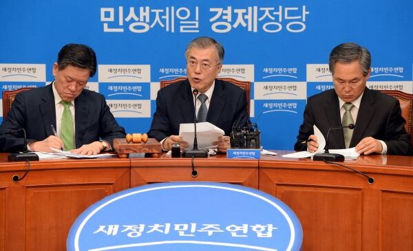 ▲ 서울 여의도 국회 새정치민주연합 대표회의실에서 지난 25일 최고위원회 회의가 열린 가운데 문재인 대표가 모두발언을 하고 있다.