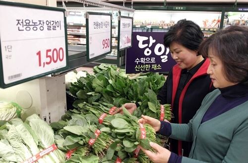 현대백화점도 지난 8일부터 시금치ㆍ대파ㆍ상추ㆍ부추 등 22개 품목을 서울 강동, 경기 남양주 등에서 직송해 서울 압구정본점, 무역센터점에서 판매한다.