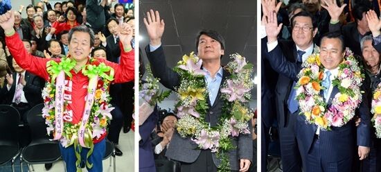 3명의 국회의원을 뽑은 이번 재ㆍ보궐선거에서 새누리당 김무성 전 대표와 이완구 전 충남지사가 각각 부산 영도와 충남 부여ㆍ청양 지역 국회의원에 당선됐다. 서울 노원병에서는 안철수 전 서울대 교수가 국회 입성 티켓을 거머쥐었다. 거물급 3명은 무리 없이 국회 입성에 성공했다.
