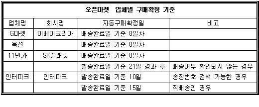 오픈마켓 업체들은 “배송지연이나 물품 분실 등 취소사유가 명확하다면 자동구매확정 후라도 판매자와 협의 하에 반품, 취소가 가능하다”고 해명했다.