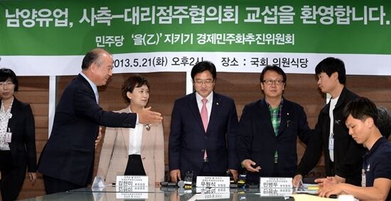 민주통합당 국회의원들도 남양유업을 항의방문 하고 참여연대가 청원한 ‘남양유업사태방지법’ 제정에 나서 ‘을의 반란’은 정치권으로 확대됐다.
