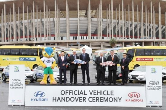 현대·기아자동차는 30일(현지시간) 브라질리아 국립경기장에서 이용우 현대차 브라질법인장 등 현대∙기아차 관계자와 제이 뉴하우스 FIFA 브라질 마케팅 대표, 리카르도 트레이드 대회 조직위원회 CEO 등 FIFA 관계자가 참석한 가운데 대회 공식 차량을 조직위에 전달했다.
