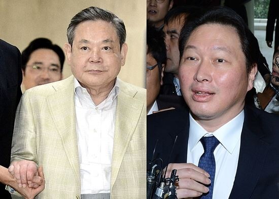 SK그룹의 경우 총수 일가의 지분율이 0.69%로 가장 낮았으며, 최태원 회장은 0.04%의 지분율로 경영권을 행사하는 것으로 드러났다.