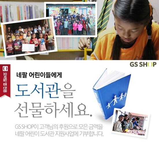 [토요경제=강수지 기자] 모바일 GS샵이 13일부터 다음달 12일까지 ‘네팔 어린이 도서관 후원 캠페인’을 실시한다.