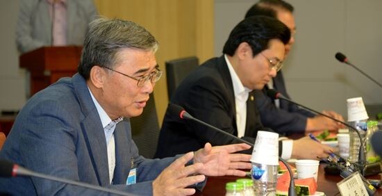 4일 오전 ‘위기의 남북관계:원인과 타개의 길’ 정학연구소 조찬세미나가 열린 서울 여의도 국회 세미나실에서 이종석 전 통일부 장관이 강연하고 있다. (사진=뉴시스)