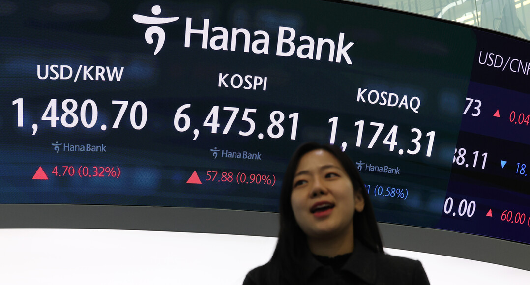 | ▲코스피가 6,470대로 올라서며 사흘 연속 사상 최고치를 경신한 23일 서울 중구 하나은행 본점 딜링룸 현황판에 코스피와 코스닥·원/달러 환율이 표시돼 있다/사진=연합뉴스 |